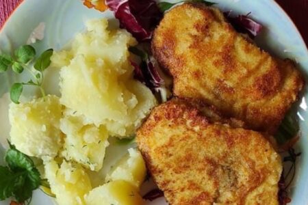 Składniki: 4 porcje filetów z łososia 1,5 łyżeczki soli 1 łyżeczka pieprzu cytrynowego 4 średnie ziemniaki 1 marchew (większa) 10 cm białej części pora 5 listki zielonego selera 1/2 pęczka zielonej pietruszki 2 łyżki masła 2 łyżki oleju Opcjonalnie: 1 cebula, 1 ząbek czosnku Przygotowanie: Ziemniaki obieramy, myjemy i kroimy w plastry 4-5 milimetrów. Rozkładamy …