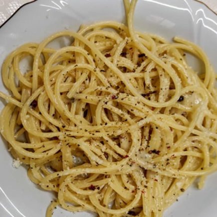 Składniki: 300 g spagetti 3 łyżki  pieprzu  kolorowego grubo zmielonego  lub  pieprzu czarnego 1/4 szklanki tartego sera pekorino romani 1/4  szklanki tartego sera Gran Padano 4 – 5  łyżek oliwy z oliwek sól do smaku Przygotowanie: W garnku zagotować wodę, posolić i ugotować spagetti ale dente W między czasie przygotować pieprz i ser Pod koniec …