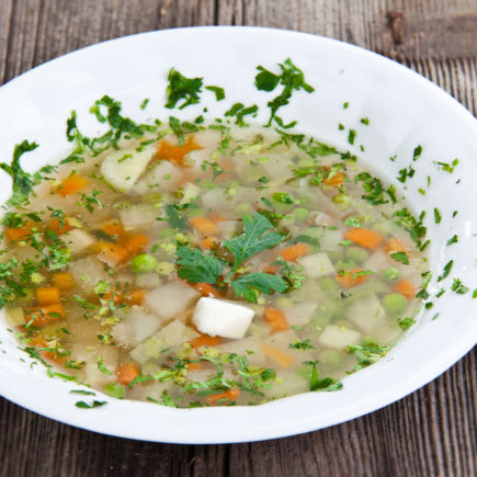 Rosół (brodo) z groszkiem, marchewką i rzepą