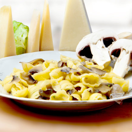Składniki 300 g conchiglie (muszelki) 300 g świeżych grzybów 100 g masła oliwa z oliwek mała cebula natka pietruszki 1⁄2 szklanki śmietany (nie gęstej) sól pieprz czarny 60 g startego parmezanu Sposób przygotowania Obraną cebulę pokroić w kostkę. Oczyszczone i umyte grzyby pokroić w półplasterki. Grzyby dusić na patelni z rozpuszczonym masłem i 3 łyżkami …