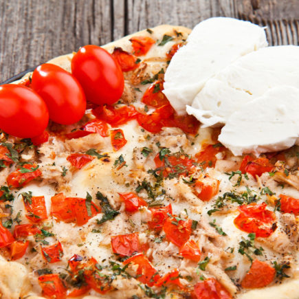 Pizza z tuńczykiem, czosnkiem i pomidorami