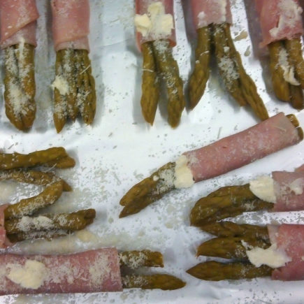 Składniki: 16 zielonych lub białych szparagów tyle samo plastrów szynki parmeńskiej 2-3 łyżki utartego sera Parmezan 1 łyżka masła sól pieprz Wykonanie: Można używać szparagów świeżych zielonych lub białych lub mrożonych. Nadają się również szparagi konserwowane w sosie naturalnym, choć najlepsze są świeże. Świeże szparagi należy oczyścić obcinając twarde końcówki oraz obrać z grubej skórki. …